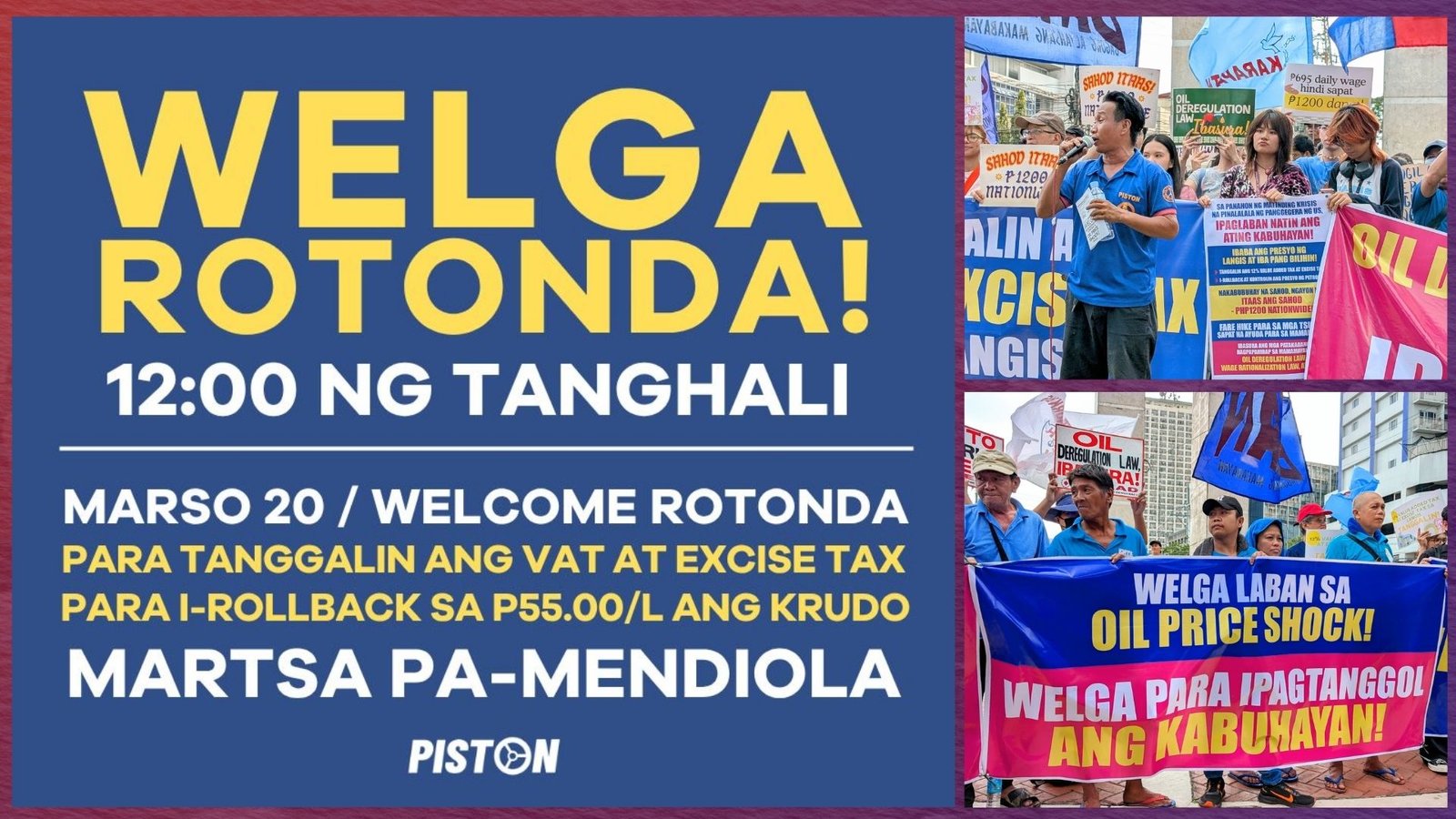 Nagpatuloy nitong Biyernes, March 20, 2026, ang ikinasang kilos protesta ng PISTON bunsod ng sunod-sunod na pagtaas ng presyo ng langis na may kaugnayan sa tensyon sa Middle East.